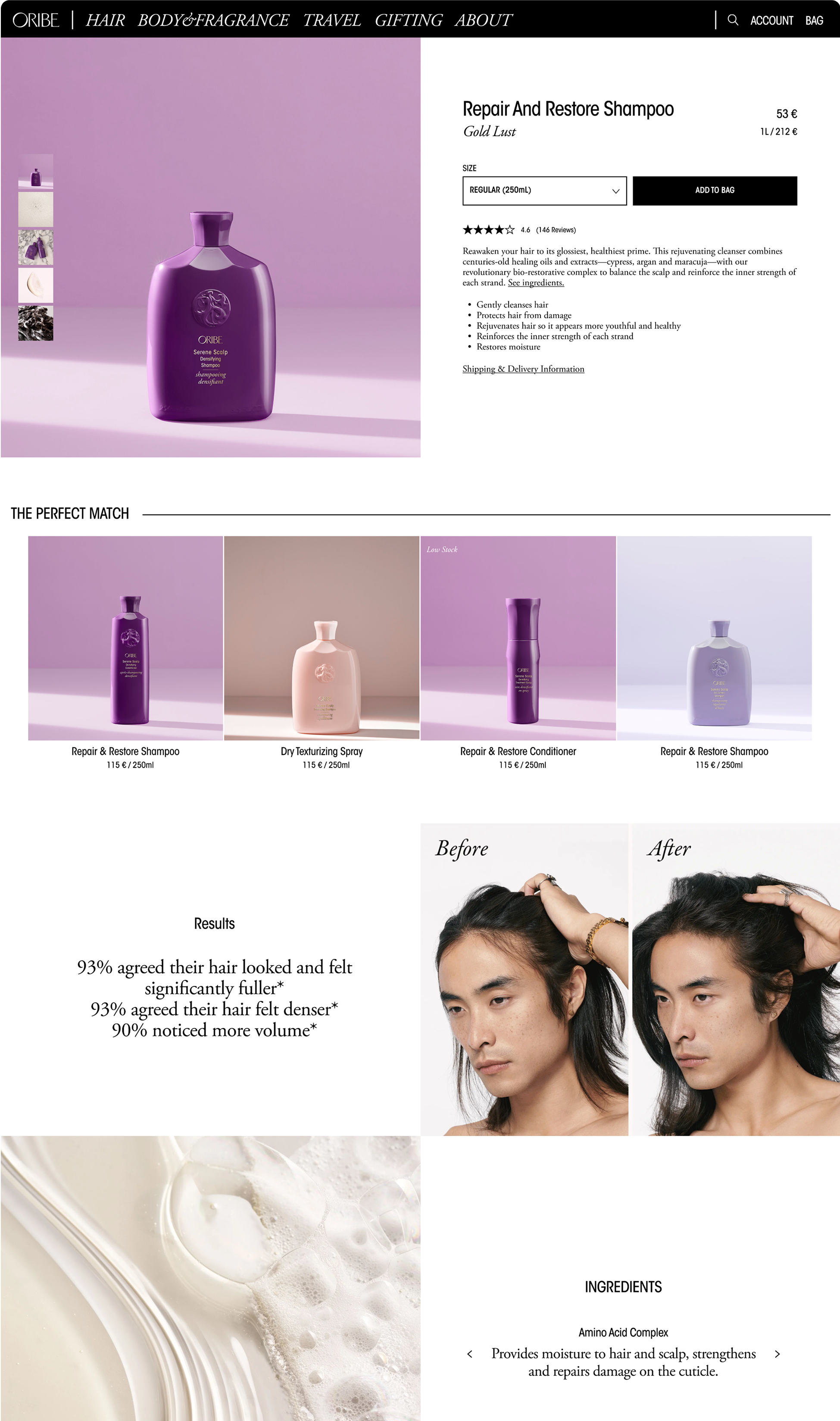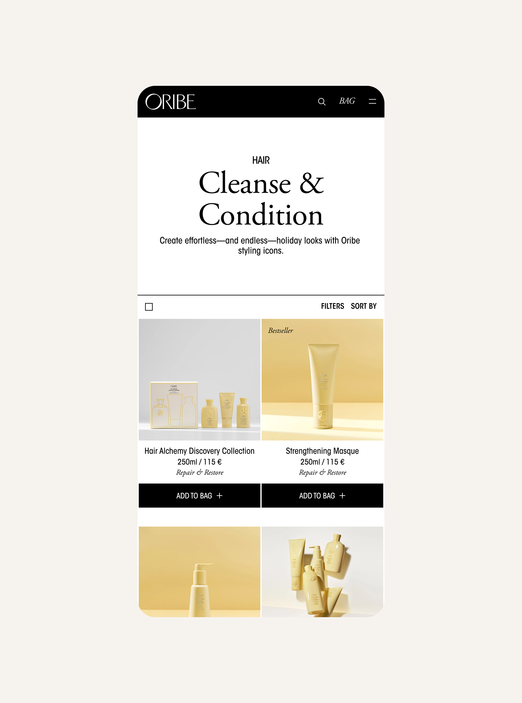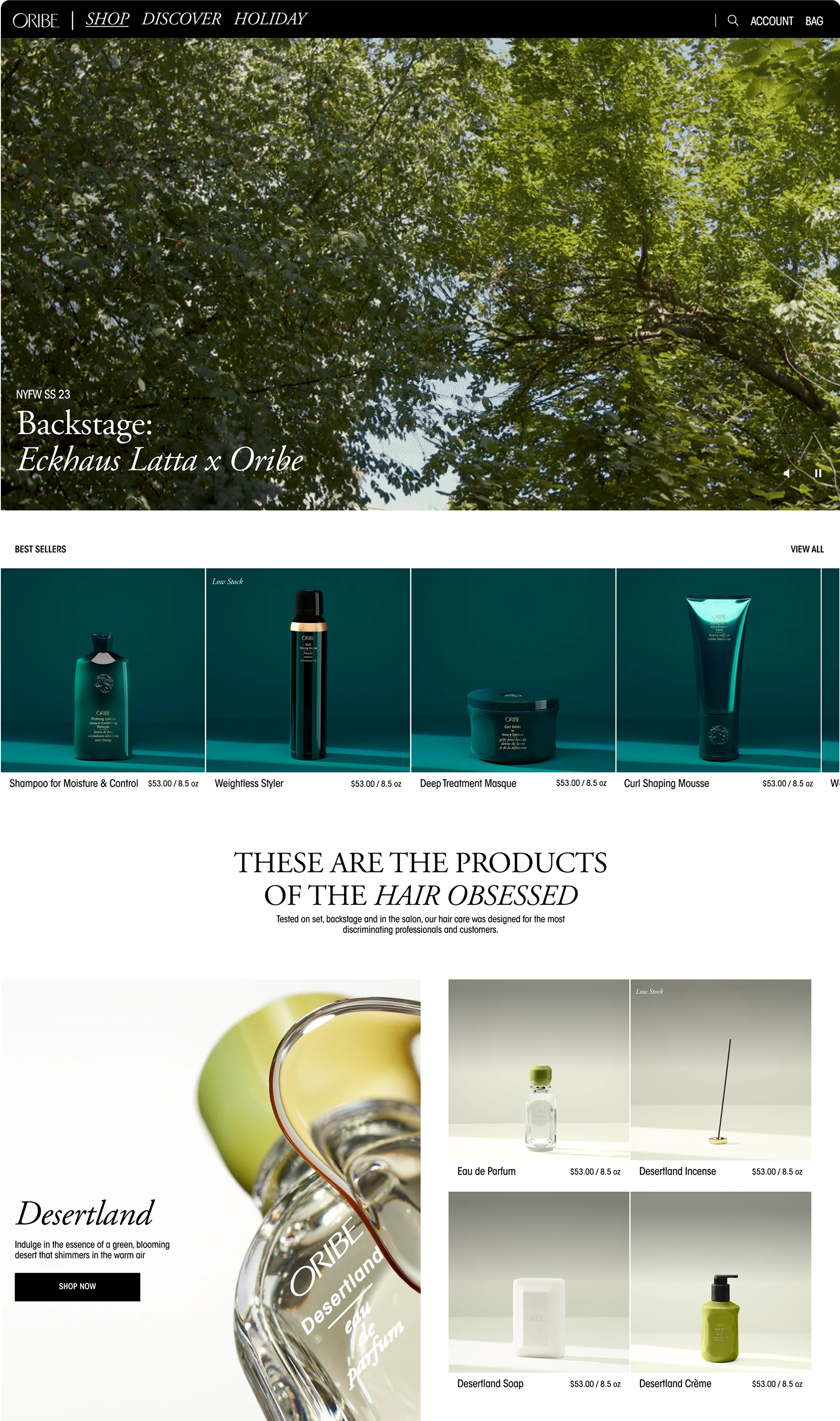 Today, Oribe.com is more than just a storefront—it’s a content-rich, commerce-forward experience that continues to evolve. Black & Black remains a trusted partner, supporting the brand’s growth through a thoughtful balance of technology, design, and strategy that stays true to Oribe’s iconic voice.