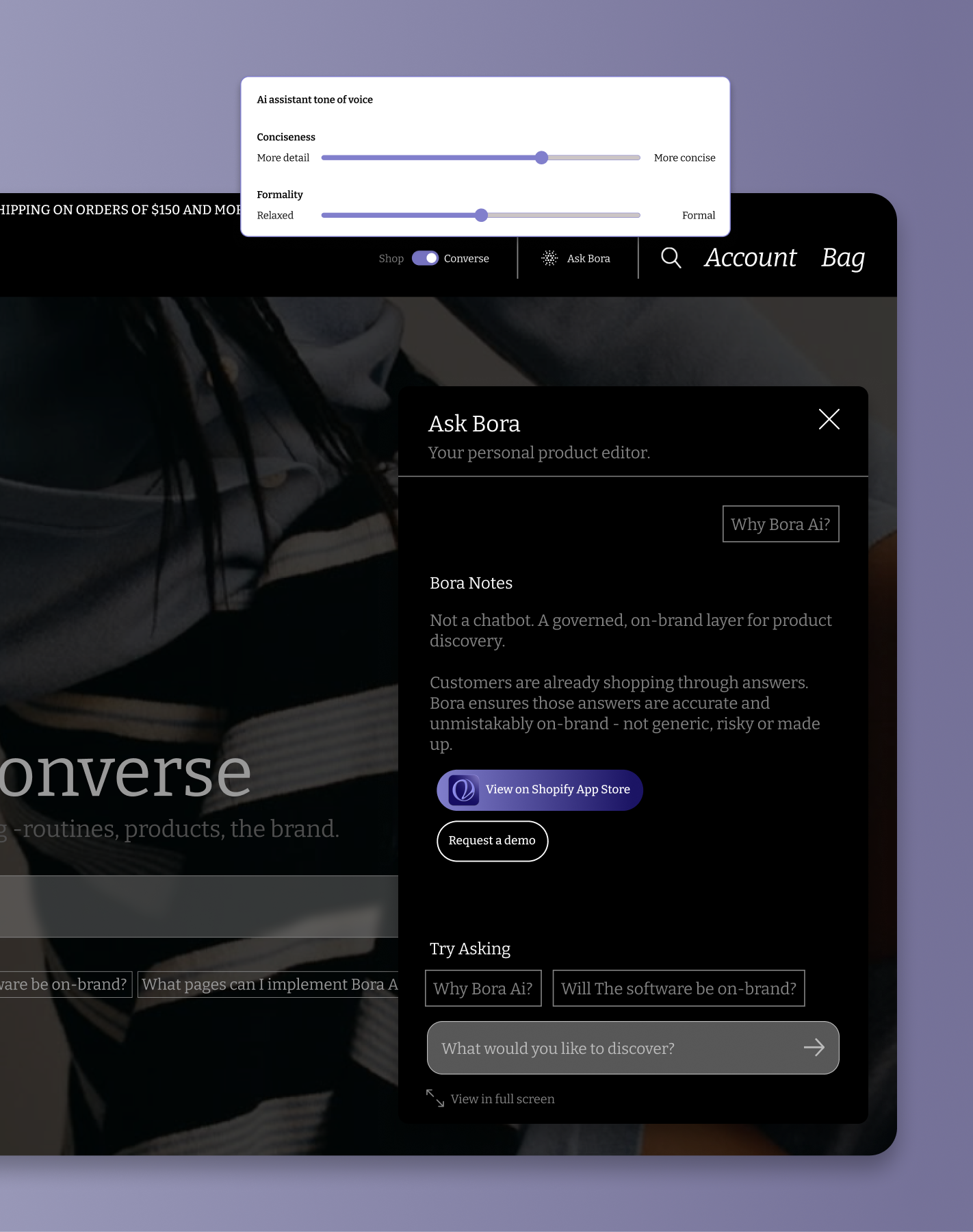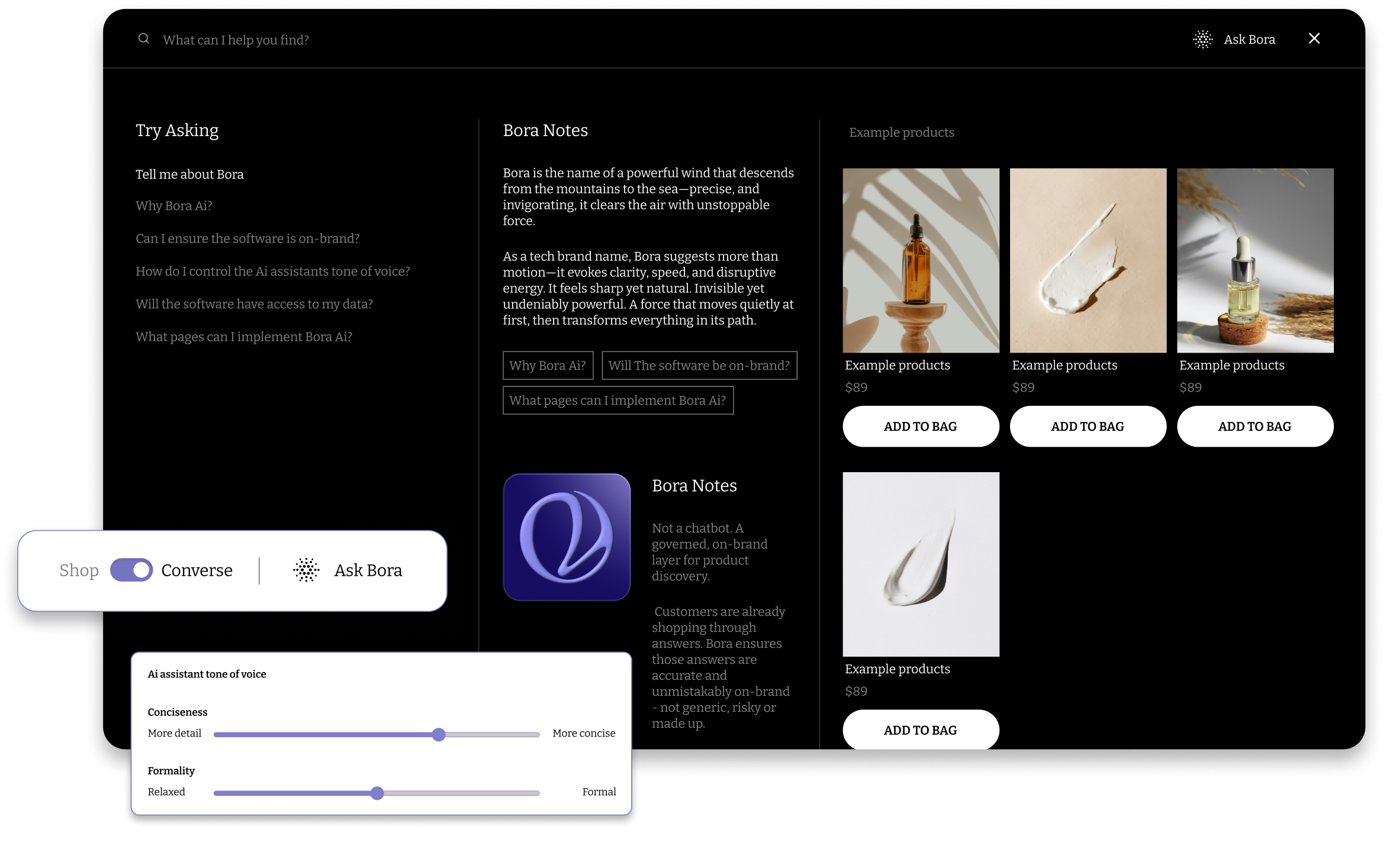 Customers are already shopping through answers. Bora ensures those answers are accurate and unmistakably on-brand - not generic, risky or made up.