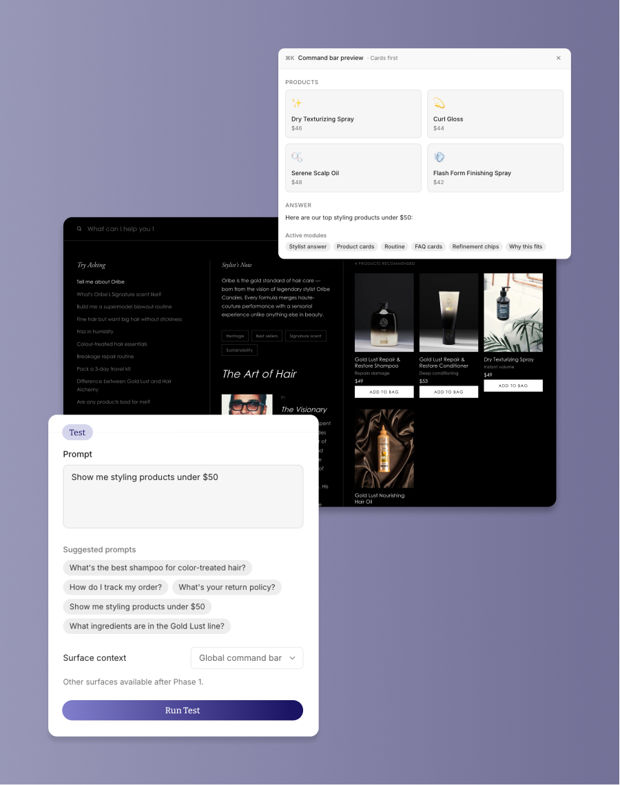 Not a chatbot. A governed, on-brand layer for product discovery.